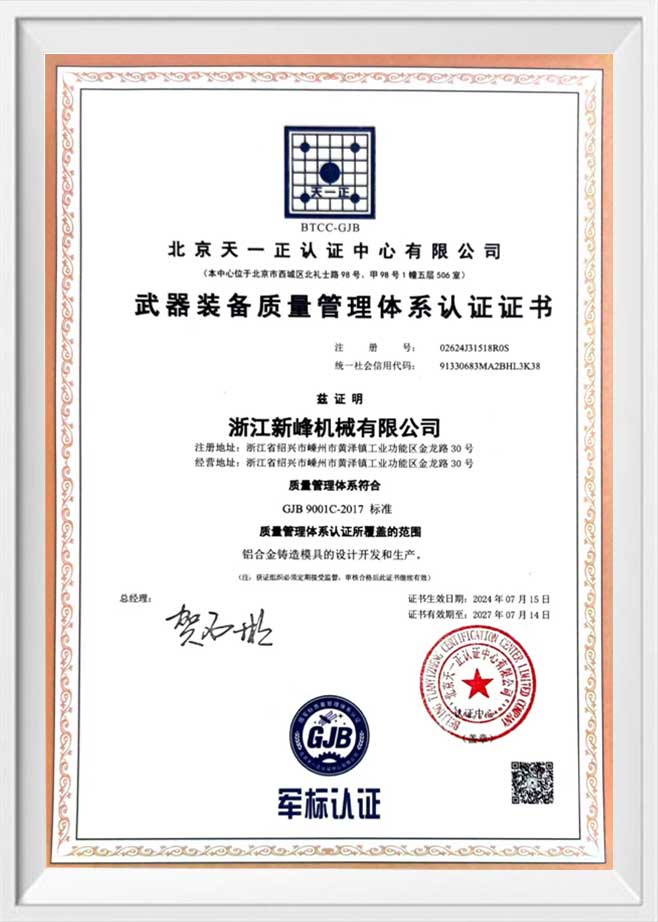 Sertipikasyon ng Sistema ng Pamamahala ng Kalidad ng Kagamitan sa Sandata